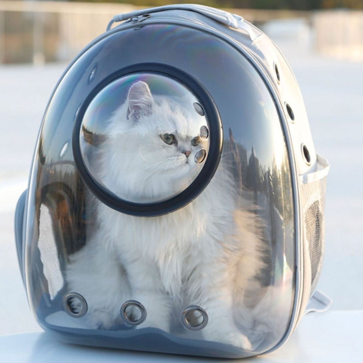 透明なドーム型窓から愛猫の様子が常に確認でき安心してお出かけできます。