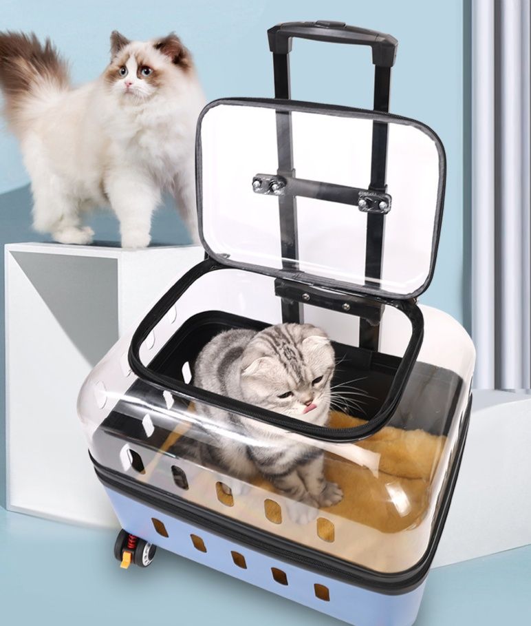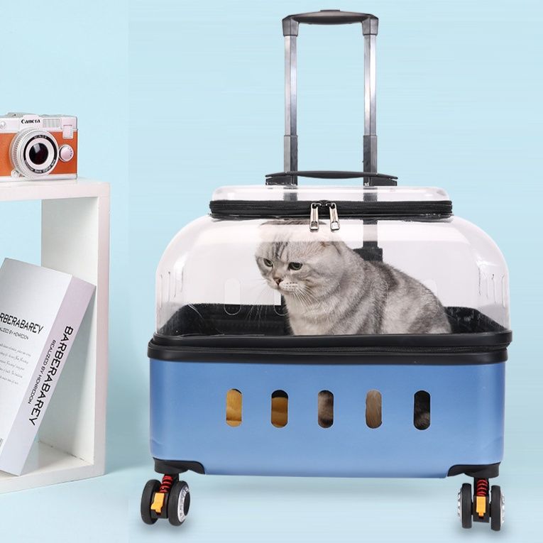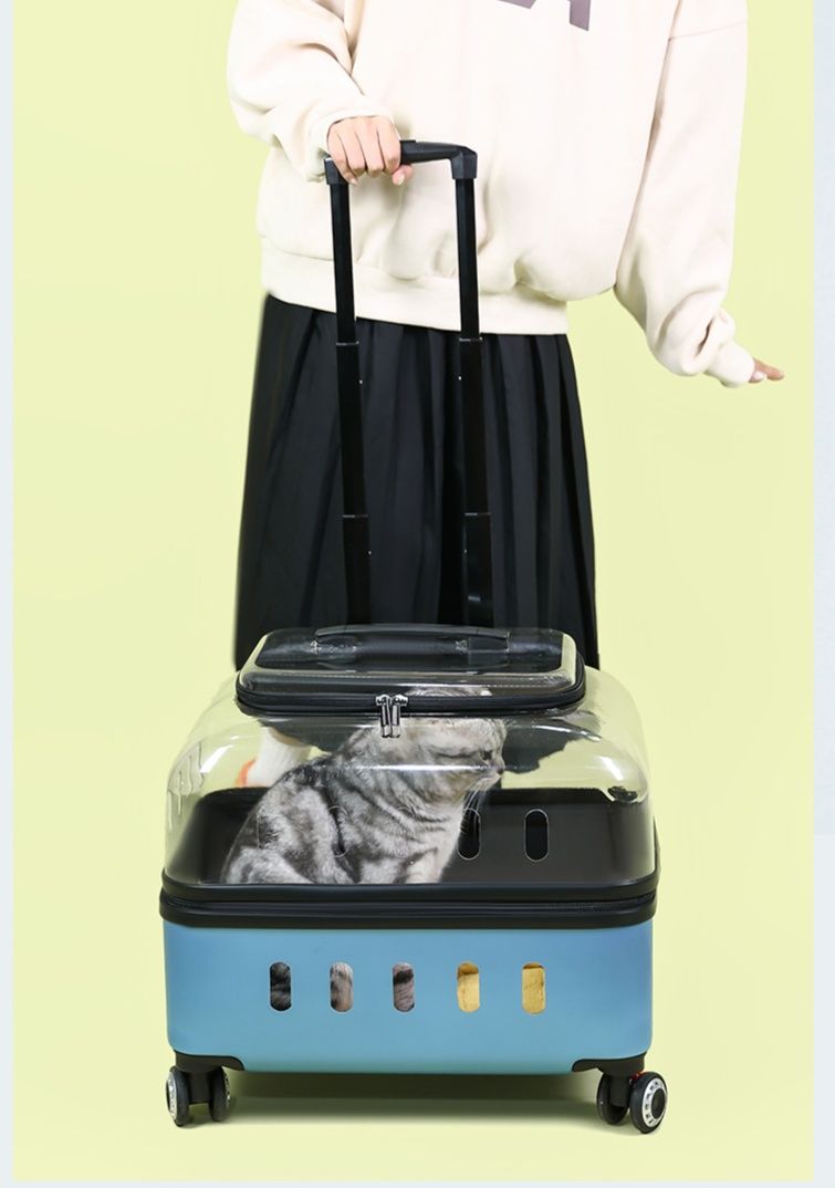 大切な愛猫とのお出かけに最適なキャスター付きの猫キャリーバッグです。 透明な窓から中の様子が確認でき、通気孔も充分に確保されているため快適な移動を実現します。 伸縮式のハンドルと四輪のキャスターで楽々移動でき、大開口設計で大きな猫ちゃんの出入りもスムーズです。 病院への通院や旅行など様々なシーンで活躍する実用的な猫キャリーバッグです。