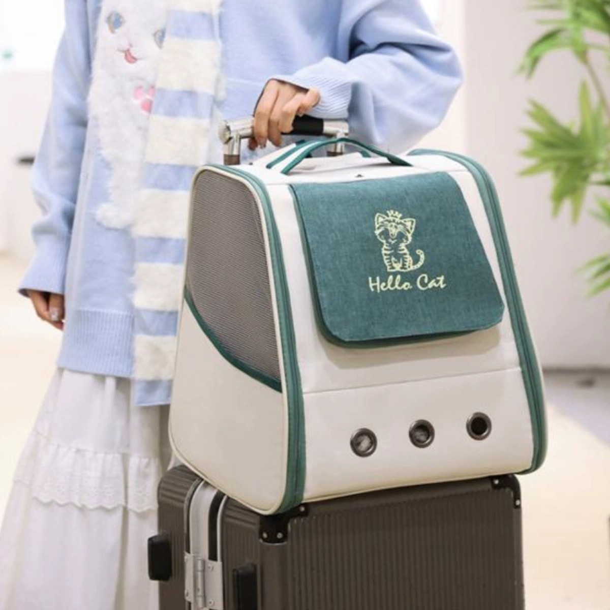 大切な愛猫とのお出かけを快適にする猫キャリーバッグのリュックです。 手持ちとリュックの2通りの使い方ができる多機能設計で、長時間の移動も疲れにくい仕様になっています。 側面と背面にメッシュ窓を配置し、通気性を確保しながら猫ちゃんの様子も確認できます。 底部には通気孔を3つ設け、空気の循環を促進します。 旅行ケースに固定できる仕様で、帰省や旅行時にも大変便利な猫用リュックです。