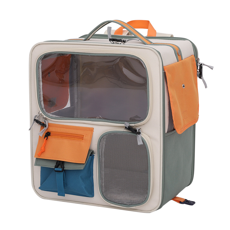 愛猫とのお出かけに最適な猫キャリーバッグのリュックです。 大きな透明窓で愛猫の様子を常に確認でき、メッシュ素材で通気性も抜群です。 開閉可能な小窓が付いており、移動中でも給水や餌やりができる便利な設計です。 前面と側面にポケットが付いて収納力も充実し、持ち手も付いて手提げとしても使用可能です。 病院への通院や旅行など様々な場面で活躍する多機能な猫用リュックです。