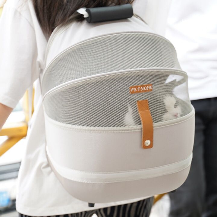 大きなメッシュ窓で通気性に優れた猫キャリーバッグのリュックタイプです。 愛猫の様子を確認しながら安心して移動できる透明窓を装備しています。 背負うだけでなく手提げとしても使える2wayタイプで、病院やお出かけに最適です。 丸みを帯びたかわいらしいフォルムと軽量設計で、長時間の移動も快適に過ごせます。 底部には安定感のある作りで、愛猫の安全をしっかり守ります。