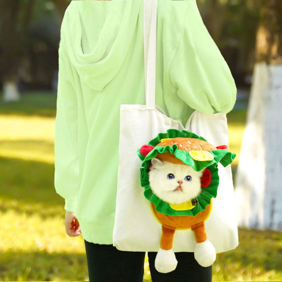 可愛い猫ちゃんをハンバーガーに変身させて持ち運べる猫キャリーバッグです。