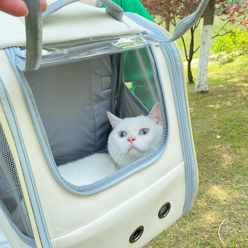 大きな透明窓で外の景色を楽しめ、メッシュ素材と通気孔で抜群の通気性を確保しました。