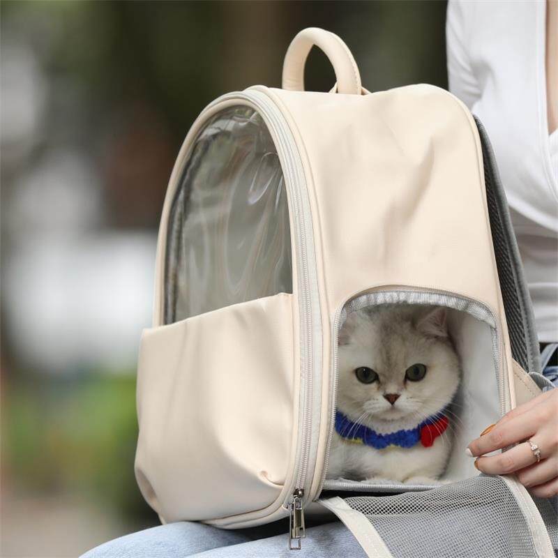 愛猫の様子が確認できる透明窓を備えた猫キャリーバッグのリュックです。