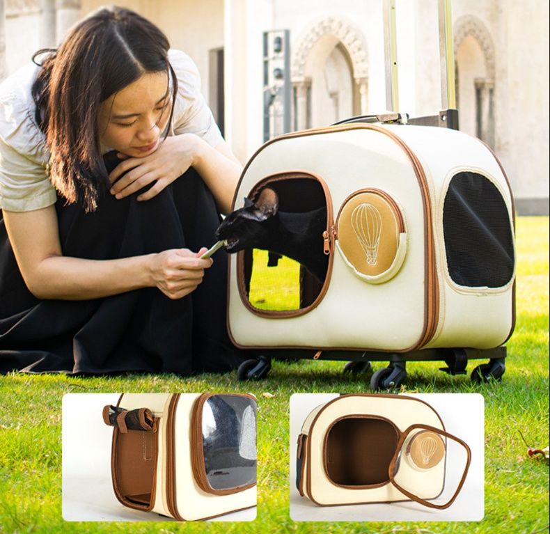 大切な愛猫との旅行や通院に最適なキャスター付きの猫キャリーバッグです。