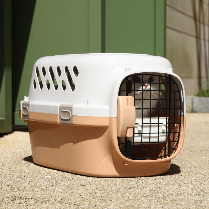 丈夫なハード素材を使用した猫キャリーバッグです。 上部と側面に大きな通気穴を配置し、愛猫が快適に過ごせる設計になっています。 金属製の扉は安全性が高く、持ち手付きで持ち運びも楽々です。 しっかりとしたロック機能で移動中も安心してご使用いただけます。 動物病院への通院やお出かけに最適な猫キャリーバッグです。